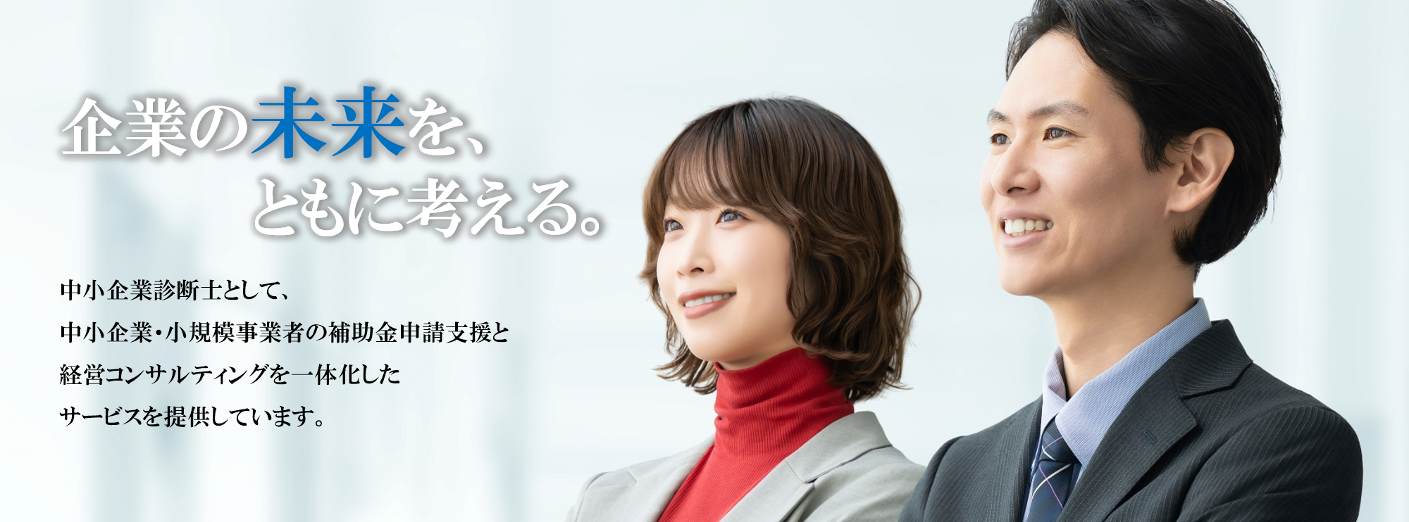 中小企業診断士として、中小企業・小規模事業者の補助金申請支援と経営コンサルティングを一体化したサービスを提供しています。