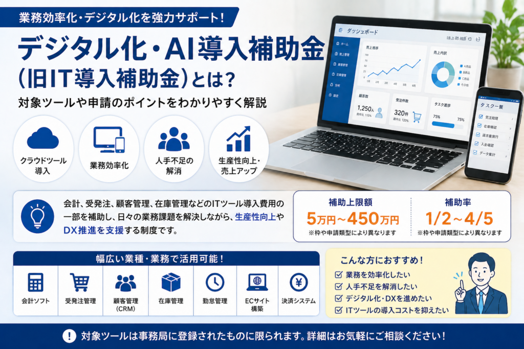 デジタル化・AI導入補助金(旧IT導入補助金)とは?業務効率化に活用できる補助金を中小企業診断士が解説